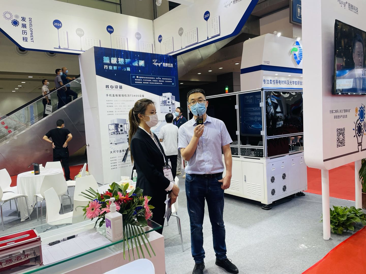 在产品层面,推出手机盖板玻璃检测T3400设备、中尺寸盖板玻璃检测T2200设备、大尺寸盖板玻璃检测T1000设备、Pad屏贴合后inline检测设备等多个系列工业质检机器人,其中,手机盖板玻璃检测系列设备已经历了三代更迭,检测精度、检出率、检测速度等多项性能指标均被证实已达到行业领先水平;